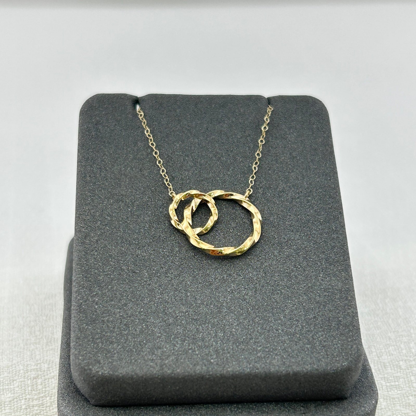 تعليقة ذهب عيار 18 بدوائر متشابكة بنقش مطرّز