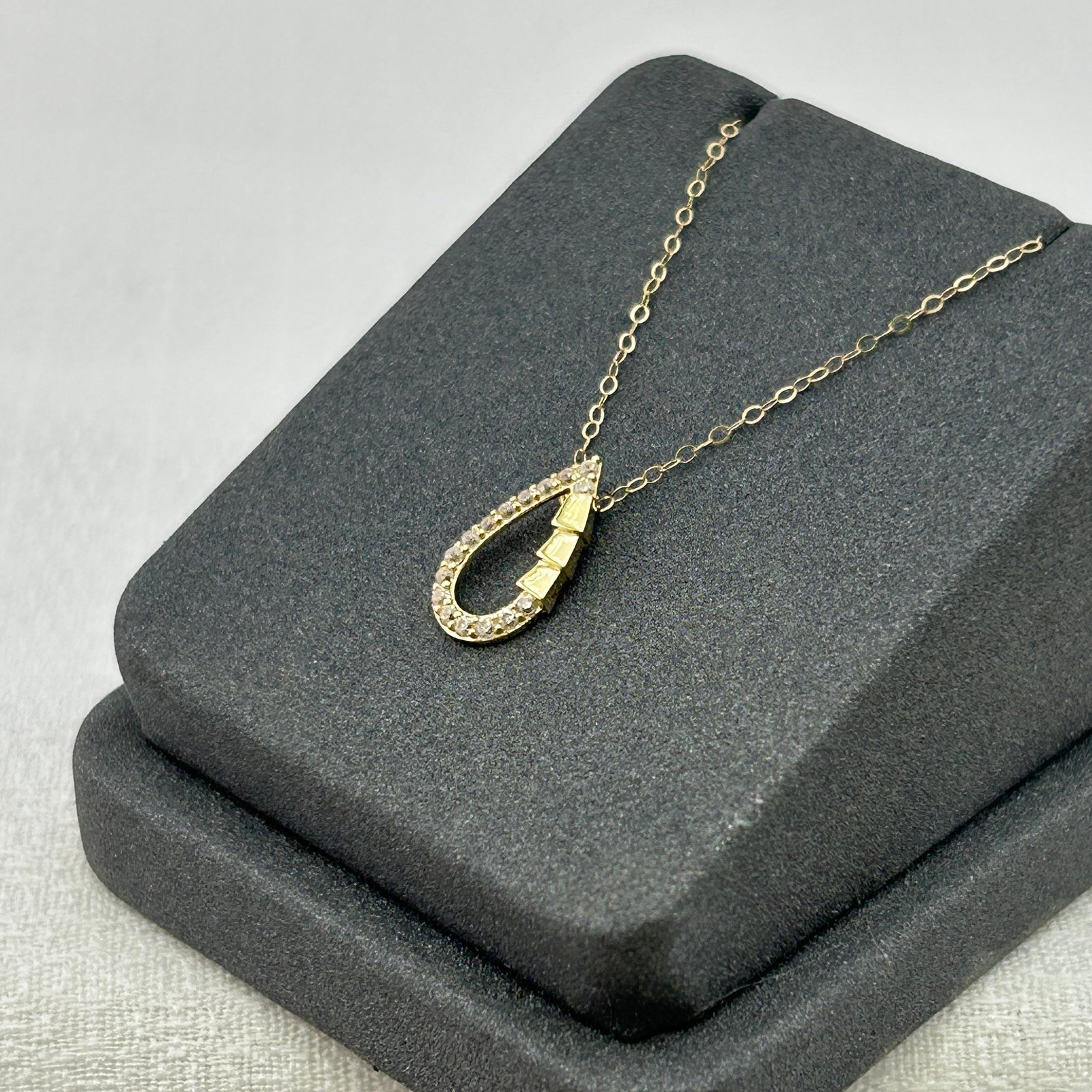 • تعليقة ذهب عيار 18 قطرة زركون بخطوط ذهبية أنيقة من جولدانا