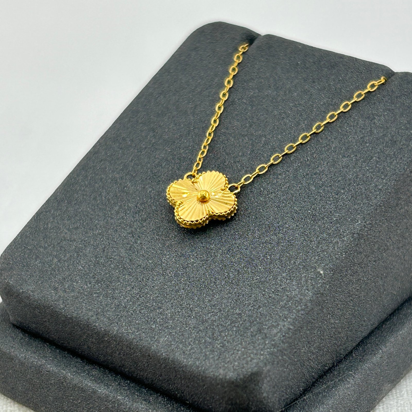 تعليقة ذهب عيار 18 بتصميم وردة محفورة تنبض بالأناقة الهادئة، محفورة بدقة لتبرز تفاصيل ناعمة تعبّر عن الذوق الكلاسيكي الراقي. قطعة مثالية لمن تعشق التميّز والأنوثة في آنٍ واحد.