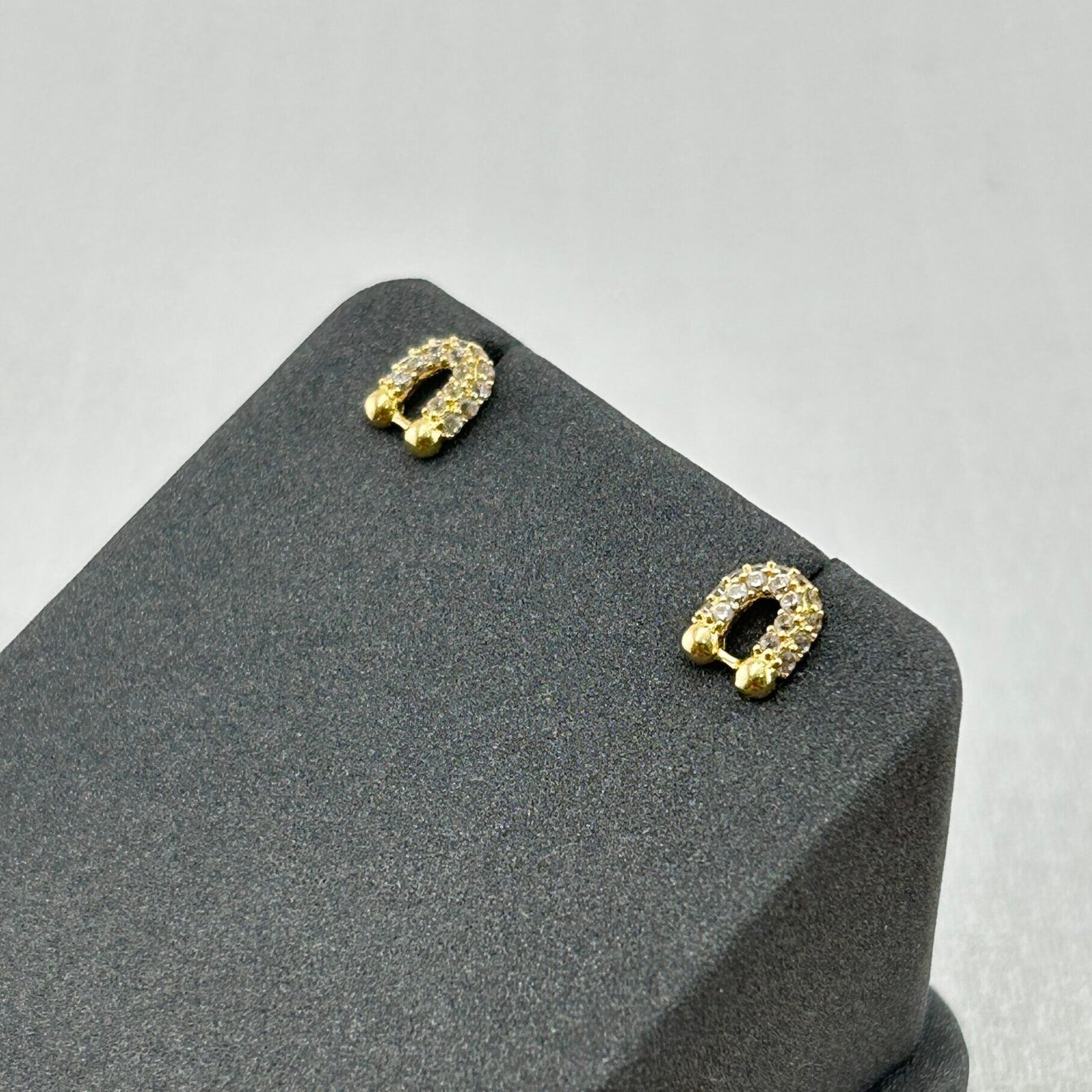 حلق ذهب عيار 18 بتصميم حدوة حصان مرصعة يجمع بين الأناقة والرمزية بأسلوب عصري أنيق. حدوة الحظ مصاغة من الذهب الخالص ومرصعة بفصوص براقة ناعمة تمنحك بريقًا ناعمًا دون مبالغة. قطعة مثالية للإطلالات اليومية ولمحبات التصاميم الرمزية.