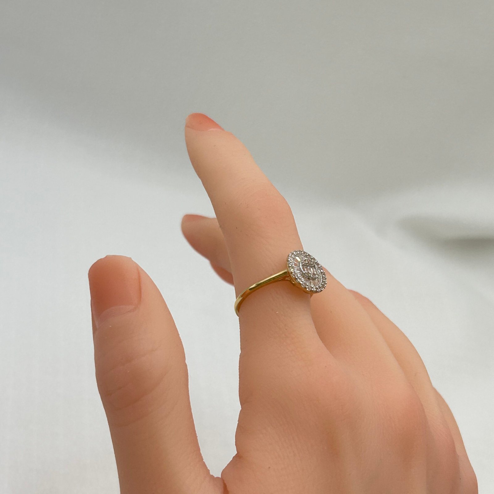 أضفي لمسة ساحرة من الفخامة والأناقة إلى إطلالتك مع خاتم ذهب عيار 18 المُصمم بتفاصيل ماسية مبهرة. كل قطعة في مجموعتنا تصنع بدقة عالية من ذهب عيار 18 عالي الجودة، ومرصعة بـأحجار زركون متلألئة بقطع هندسي مميز، لتعكس أناقة لا تُضاهى وتناسب كل مناسباتك الخاصة.