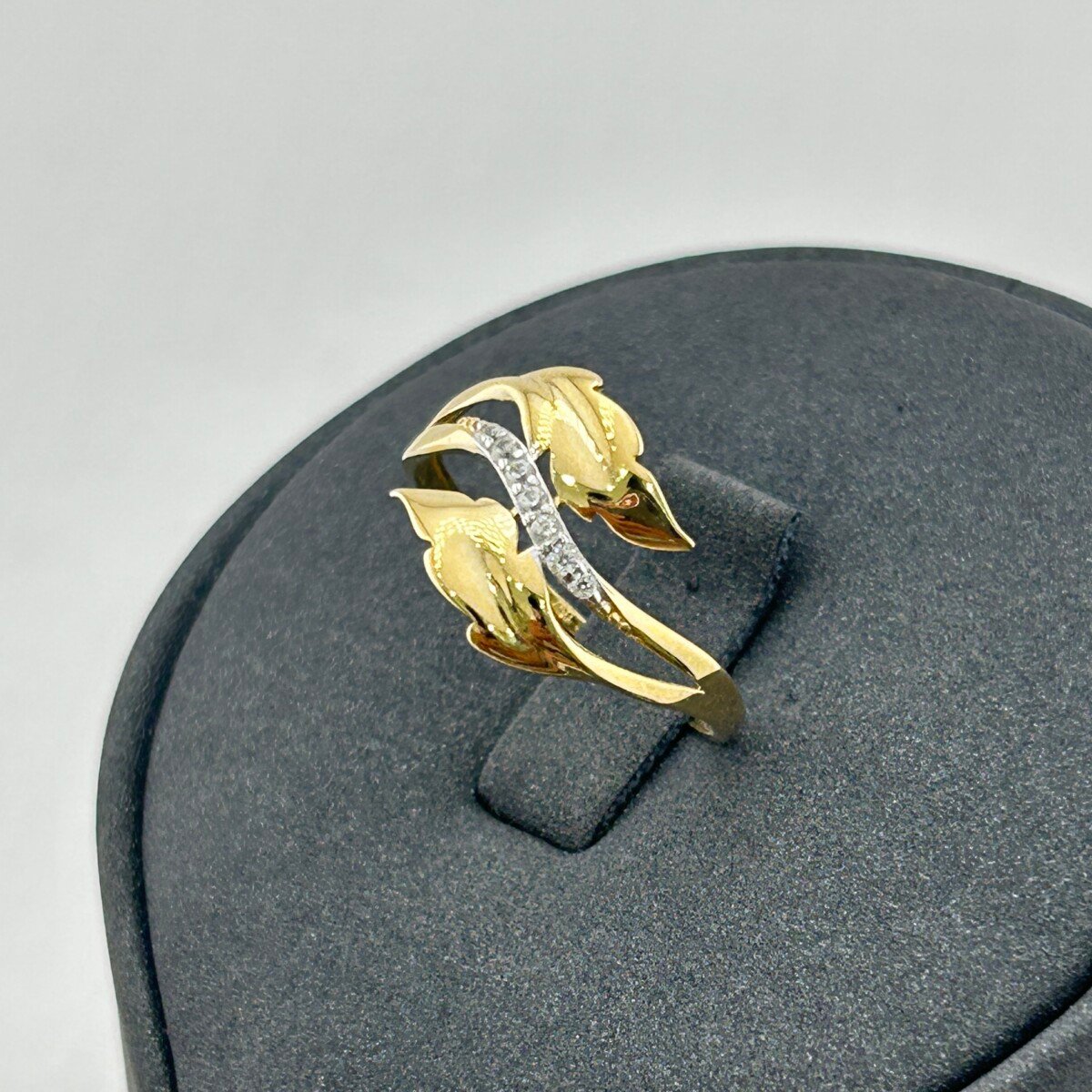 • خاتم ذهب عيار 18 تصميم كلاسيكي بأوراق منحنية مرصعة من جولدانا
