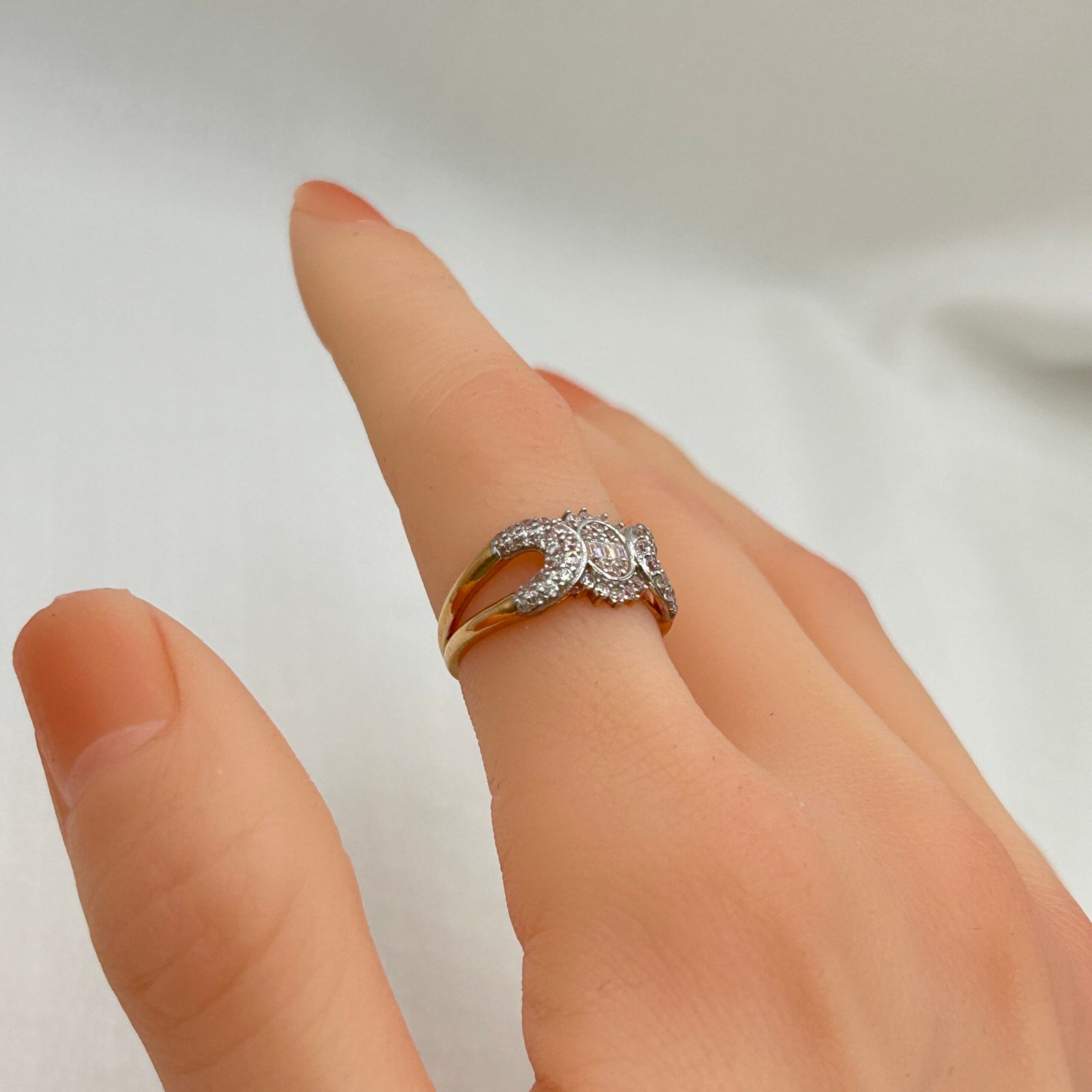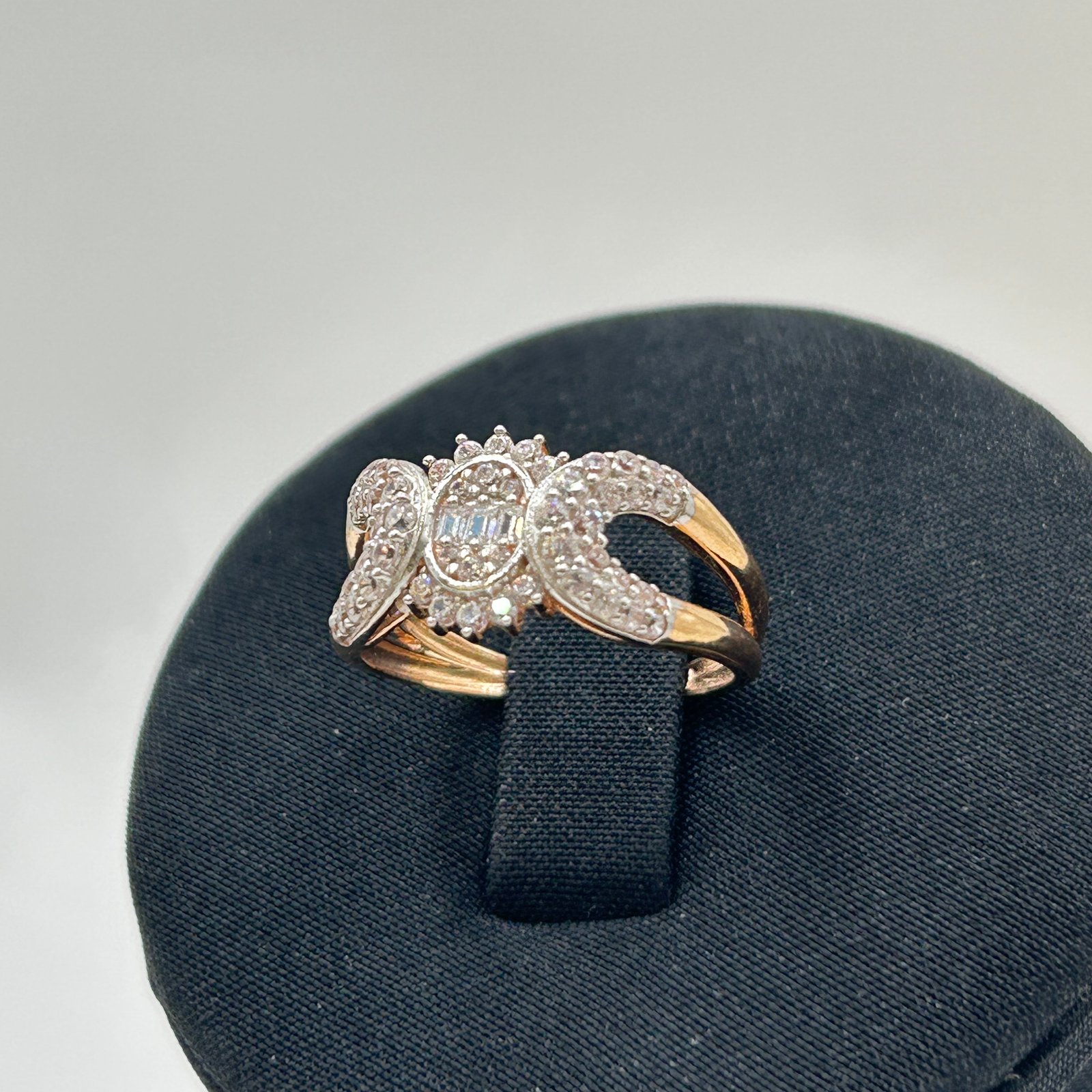 خاتم ذهب عيار 18 بتصميم زاوي مبتكر، يظهر فيه شريط ذهبي ينحني بشكل مثلثي ليحمل حجر زركون لامع يتوسطه بدقة. المظهر الجريء والتصميم الحاد يعكسان قوة الشخصية وأناقة الحداثة، ما يجعله مثالياً لإطلالات يومية أو مناسبات تتطلب لمسة فريدة.