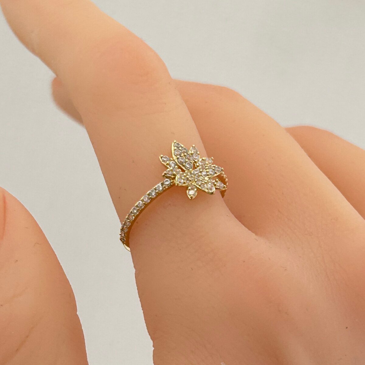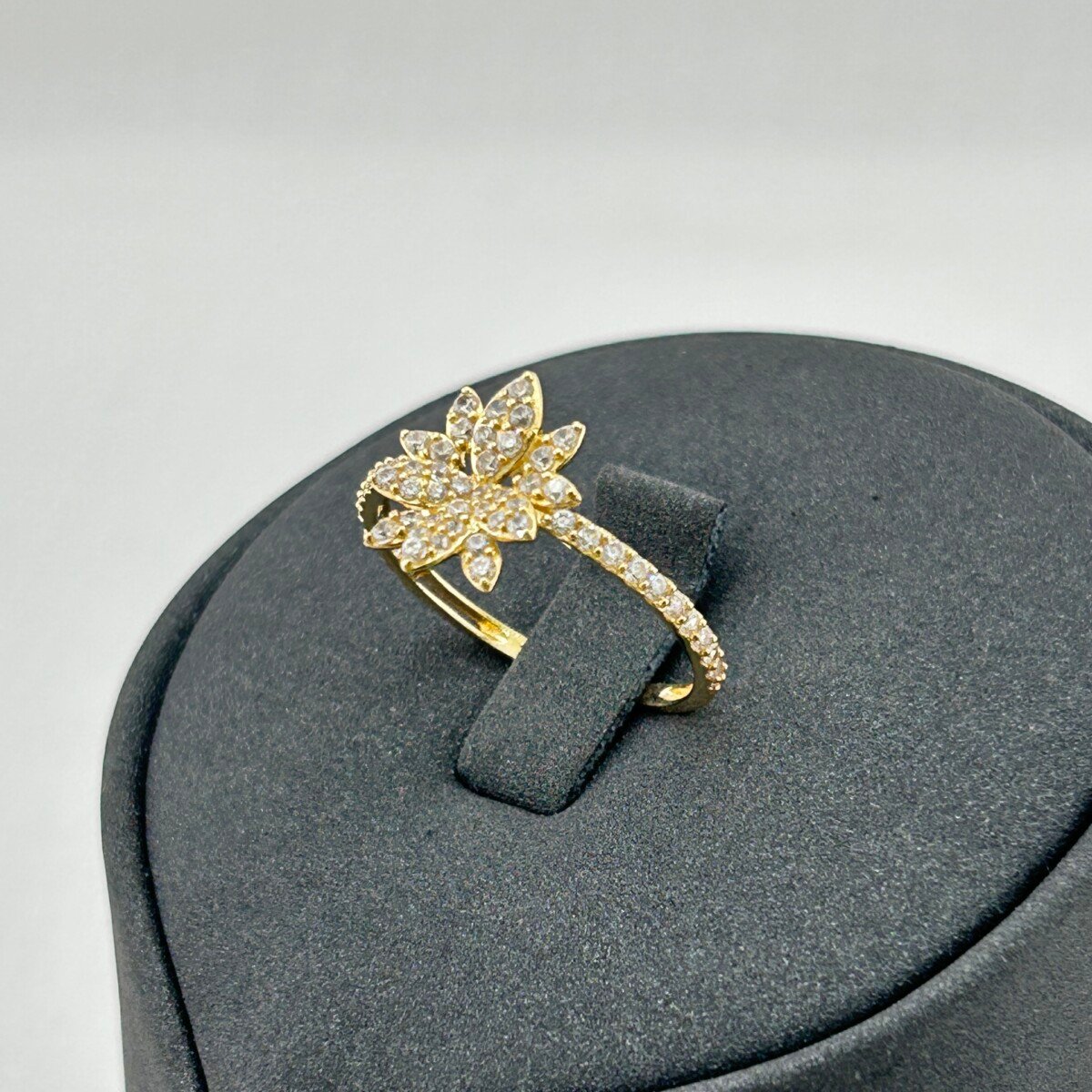 خاتم ذهب عيار 18 بزهرة زركون مزدوجة الطبقات يجمع بين الإبداع في التصميم ودقة التفاصيل. مستوحى من الزهور المتفتحة، تأتي طبقاته المزدوجة مرصعة بأحجار الزركون المتلألئة لتضفي بريقًا يليق بالمناسبات الفاخرة والإطلالات اليومية الراقية. التكوين الألماسي يمنحه طابعًا مميزًا يأسر الأنظار من أول وهلة.