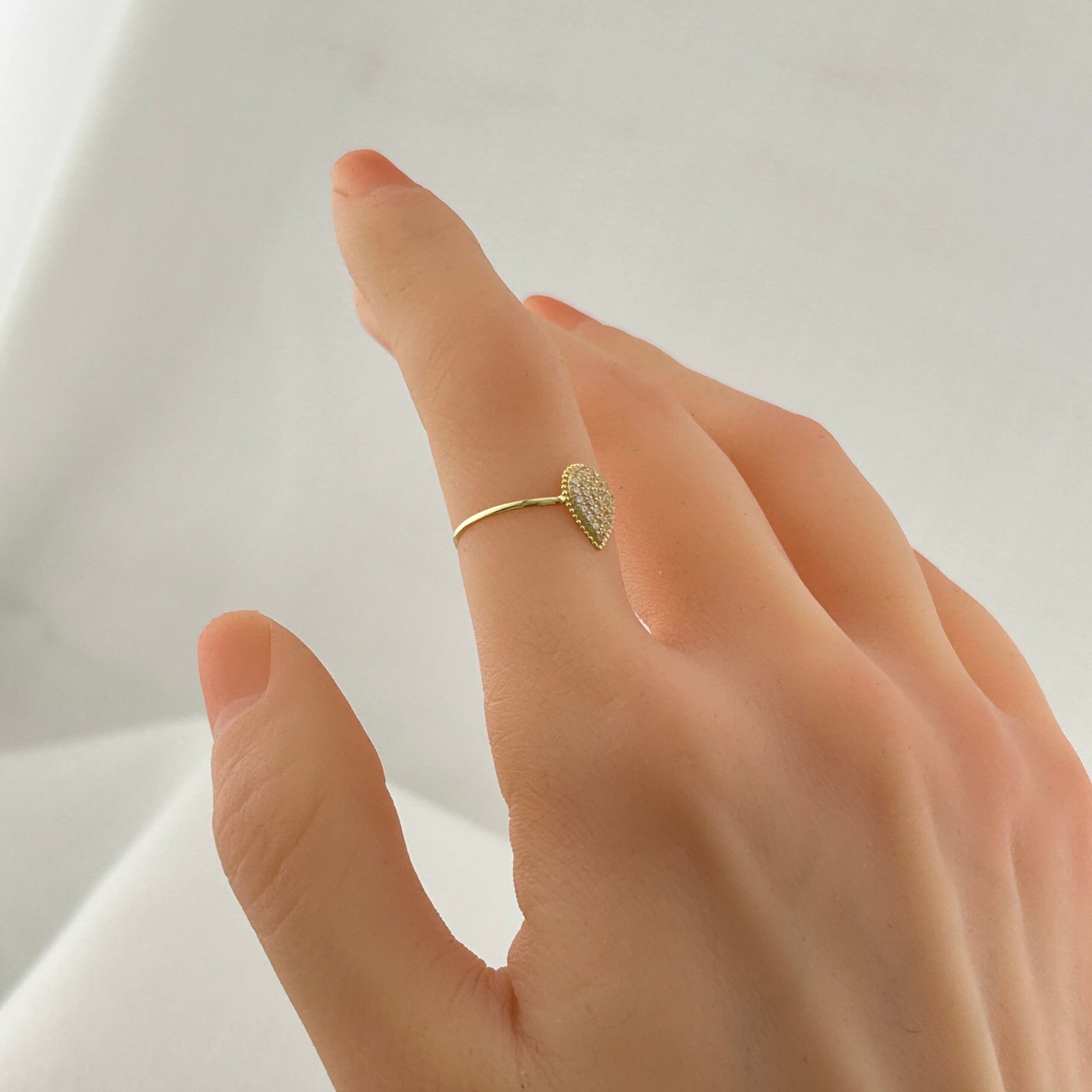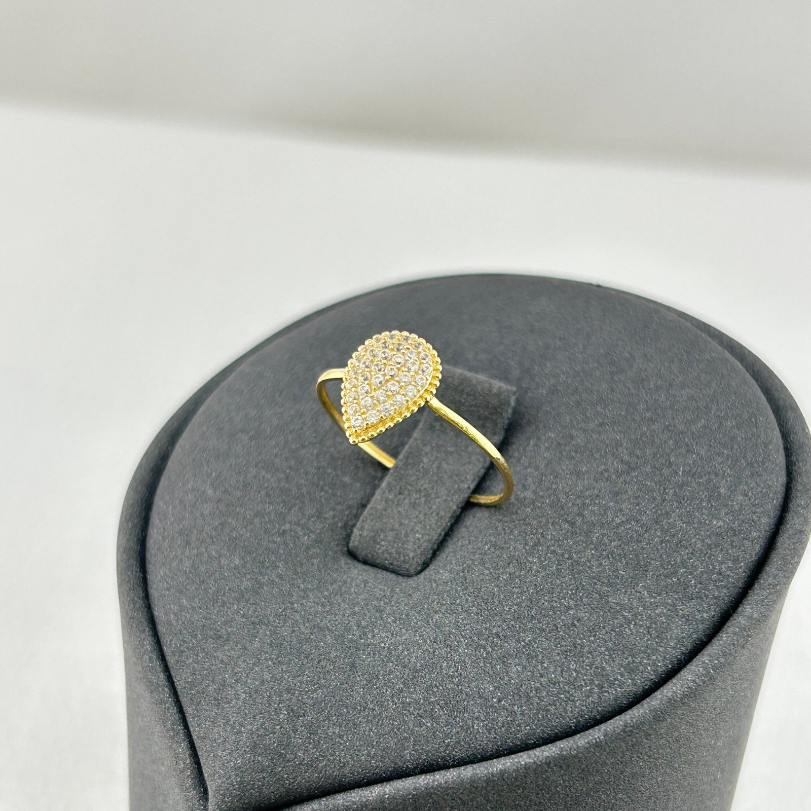 • خاتم ذهب عيار 18 بفص دمعة مرصوفة أنيق ولامع من جولدانا